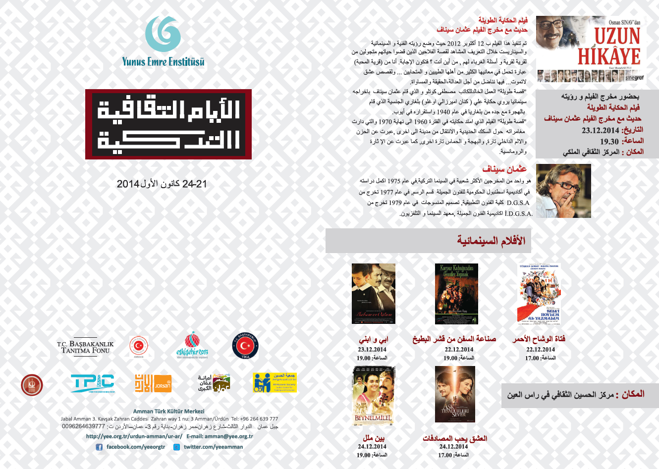 22-24 Aralık tarihleri arasında Kral Hüseyin Kültür Merkezi’nde gösterimde olacak filmler aşağıda sunulmuştur: