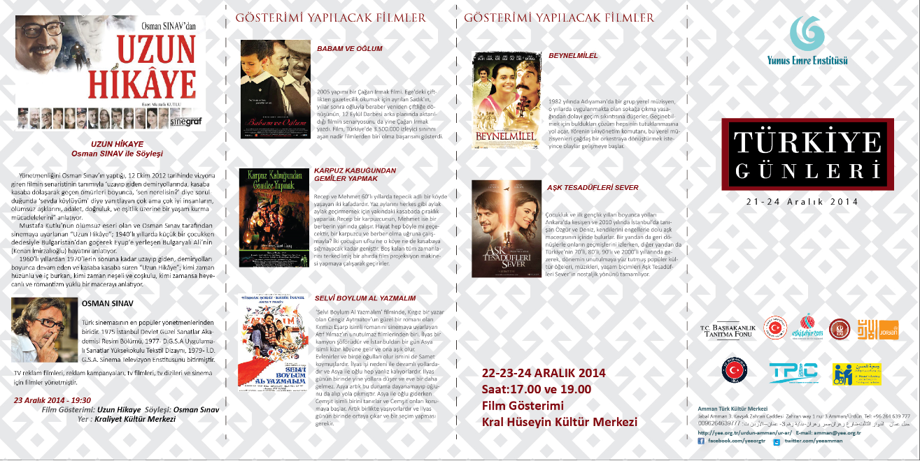 Amman'da 21-24 Aralık 2014 tarihlerinde düzenlenecek "Türkiye Günleri" etkinliklerinin ayrıntılı programı ekli programda sunulmuştur. Vatandaşlarımıza saygıyla duyurulur. (Ek-1, Ek-2)